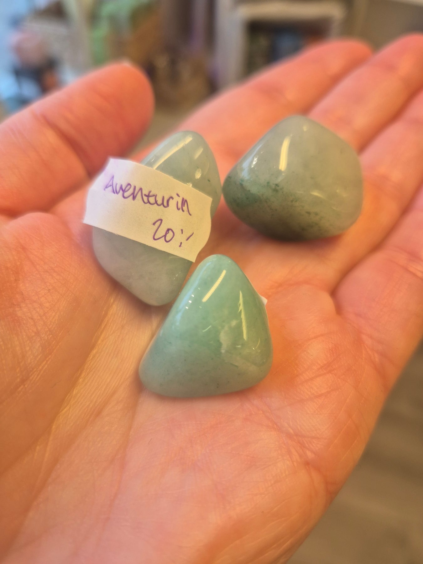 Sägs om stenen: Grön aventurin är en sten för hjärtchakrat, den sägs lösa emotionella blockeringar och vara bra för healing, särskilt för lungor, bihålor, hjärtat och vid infektioner. Sägs även hjälpa din karriär samt dra till sig pengar, samt vara en lyckosten.