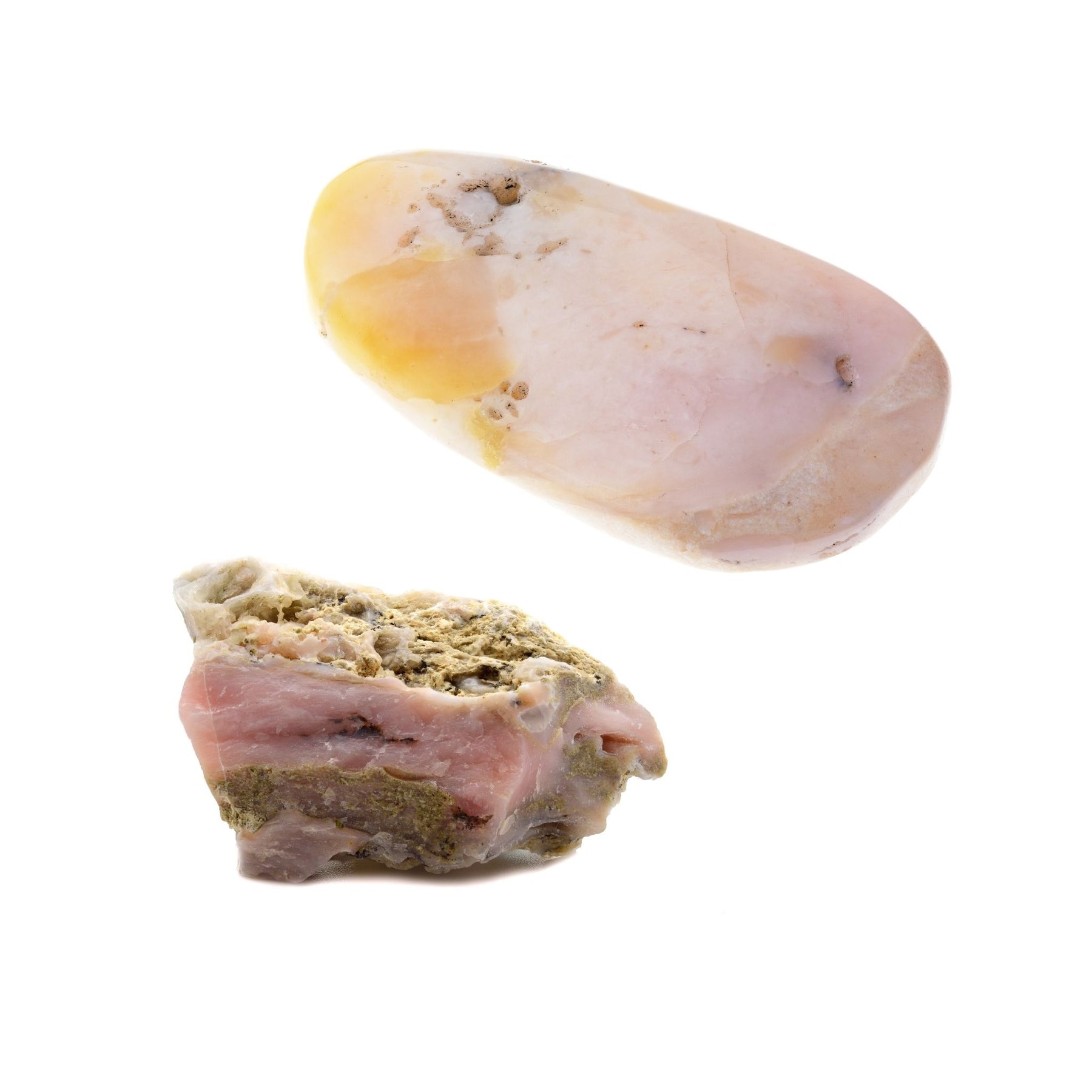 Rosa opal kommer ofta från Peru och är en sten för hjärtat. Du kan hålla den när du mediterar för att ta fram medkänsla och healing av smärtsamma minnen, speciellt i relationer. Opal i alla sina former är en sten för hopp och förtröstan.