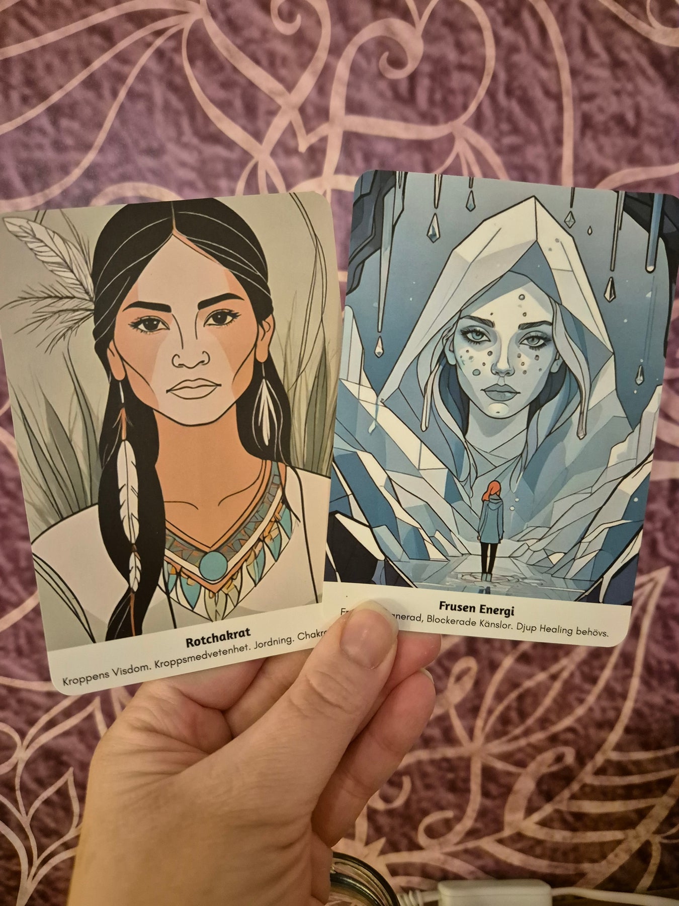 Korten följer den Andliga uppstigningen där det första kortet är Rotchakrat och det sista den Högsta Källan. Varje kort bär på ett unikt budskap, som hjälper dig att skapa medvetenhet, läka och få universell vägledning.